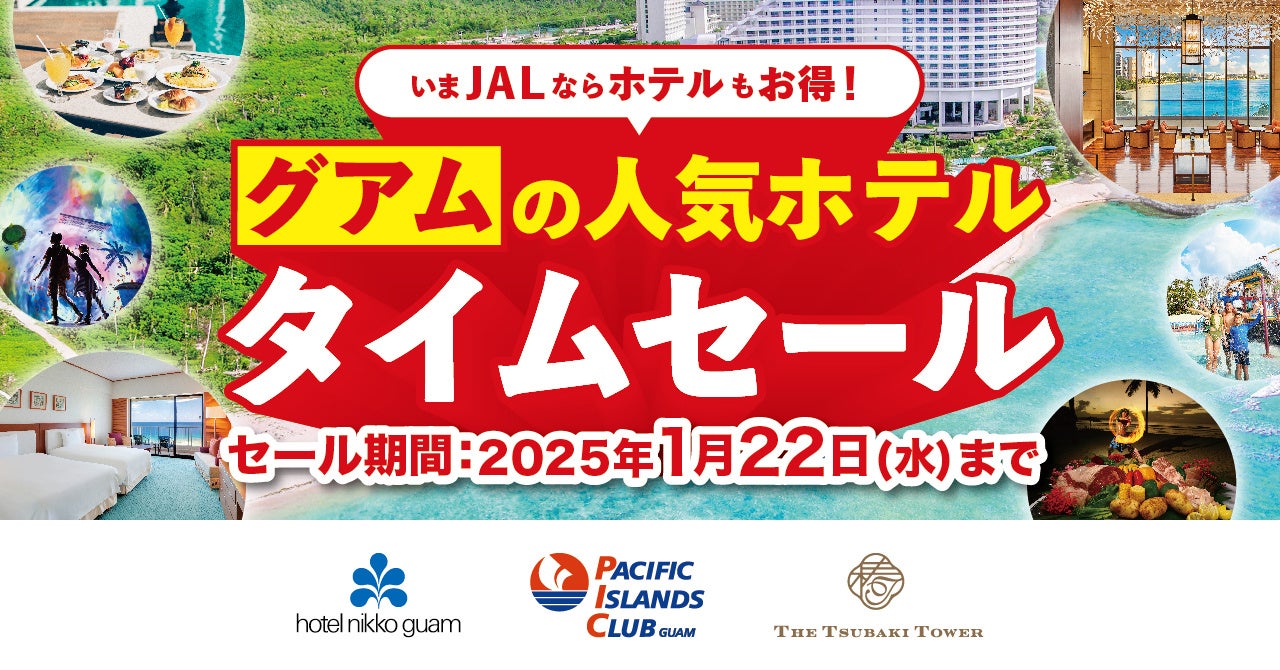 グアムのデラックスホテル 3ホテルは、2025年1月10日(金)~ 1月22日(水)の期間限定で「JAL限定 グアムホテル タイムセール」を開催いたします。このセールはJALによるJALunLun 2025新春キャンペーンの航空券タイムセールと同時に開催する共同企画第三弾で、各々のセールを利用することで、航空券とホテルをそれぞれお得にご購入・ご予約いただけます。