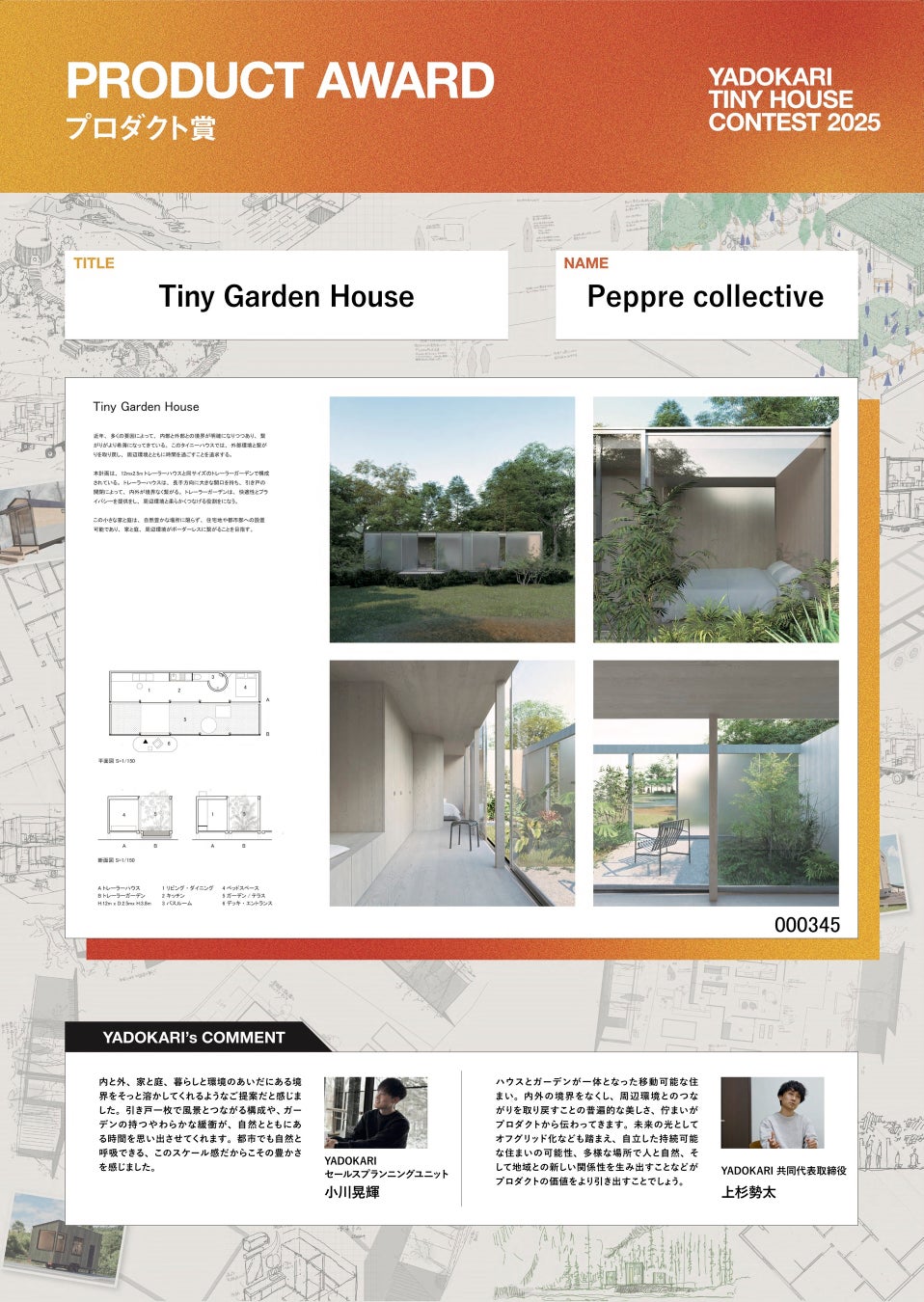 YADOKARI株式会社(本社:神奈川県横浜市/代表取締役 上杉勢太・さわだいっせい、以下「YADOKARI」)は、タイニーハウスが持つ多様な可能性に着目し、その価値を社会で最大限に活かすためのアイデアを募集するコンテスト「YADOKARI TINY HOUSE CONTEST 2025」(以下、本コンテスト)を開催しました。