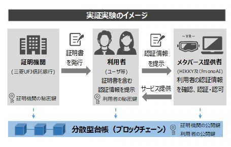本実証実験では複数のメタバースを利用する利用者や個人クリエイターを想定し、三菱UFJ信託銀行はNTTデータの分散型ID管理基盤を活用のうえ共通認証規格を構築します。