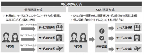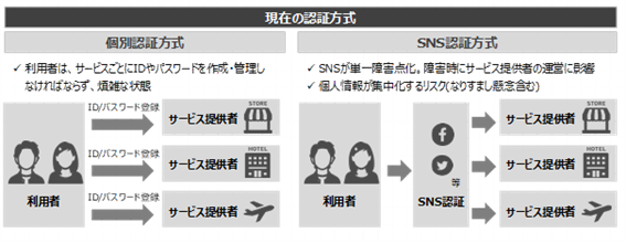 現在、様々なサービスの利用者はID管理が煩雑な状態にあり、特定の企業にID管理の権限や個人情報が集中することによる情報漏洩やなりすまし等のリスクが高まっています。