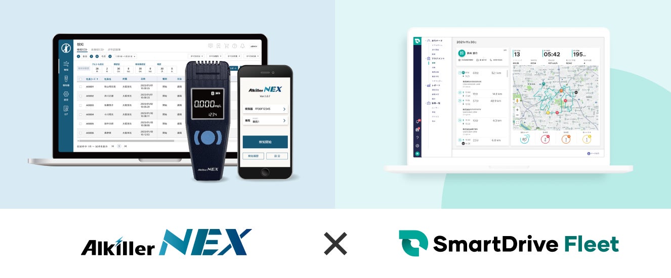 【12/1 アルコール検知器の使用義務化に向けて】クラウド型アルコールチェックサービス「アルキラーNEX」とクラウド型車両管理システム「SmartDrive Fleet」が連携を開始