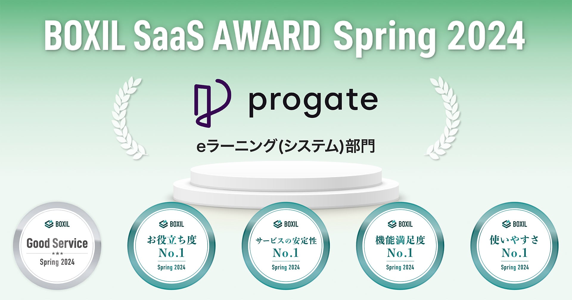 株式会社Progate(本社:東京都渋谷区、代表:加藤將倫、以下Progate)が提供するオンラインプログラミング学習サービス「Progate」は、スマートキャンプ株式会社(以下「スマートキャンプ」)が主催する「BOXIL SaaS AWARD Spring 2024」のeラーニング(システム)部門で「Good Service」ほか4つの賞に選出されたことをお知らせいたします。