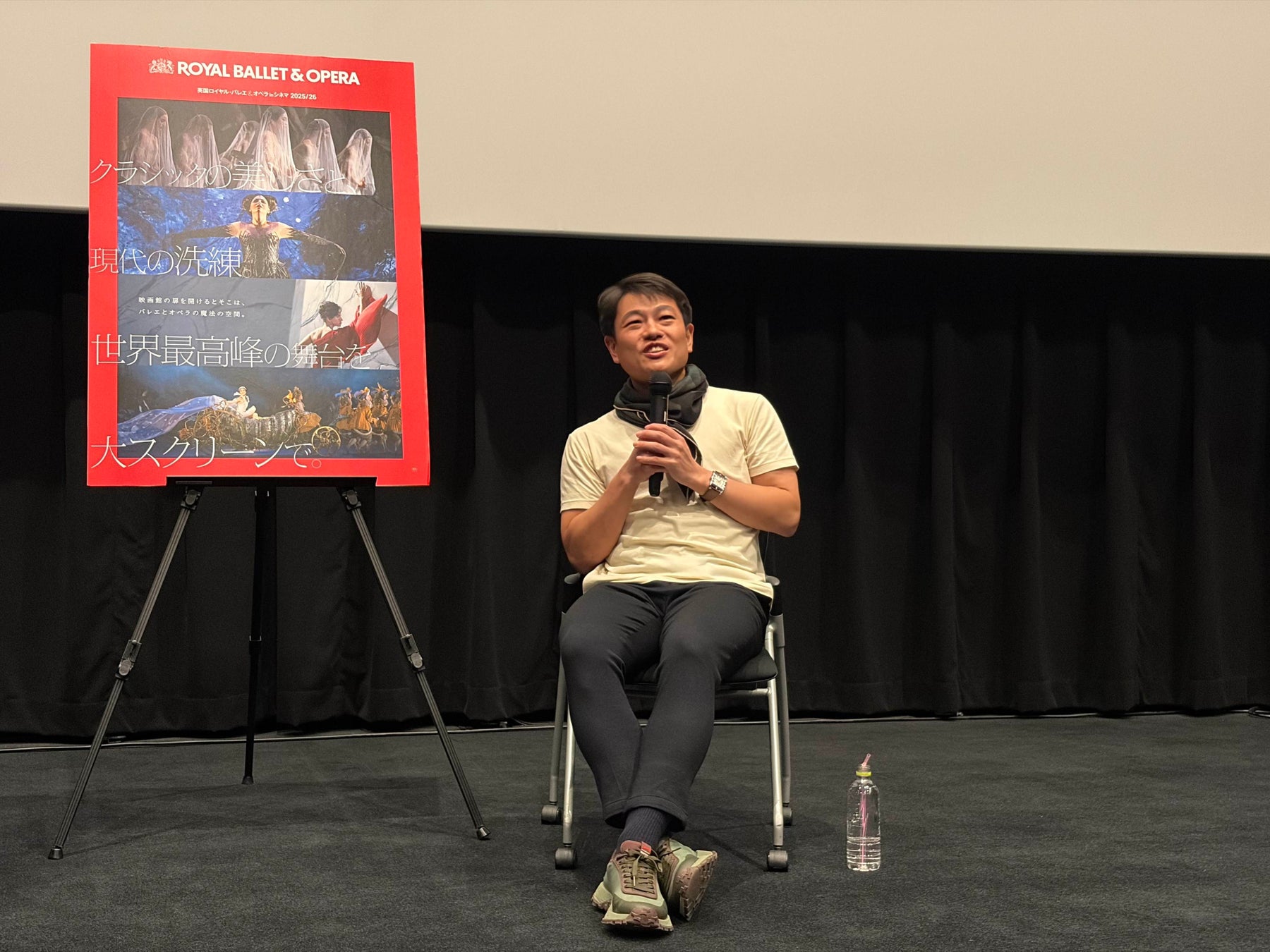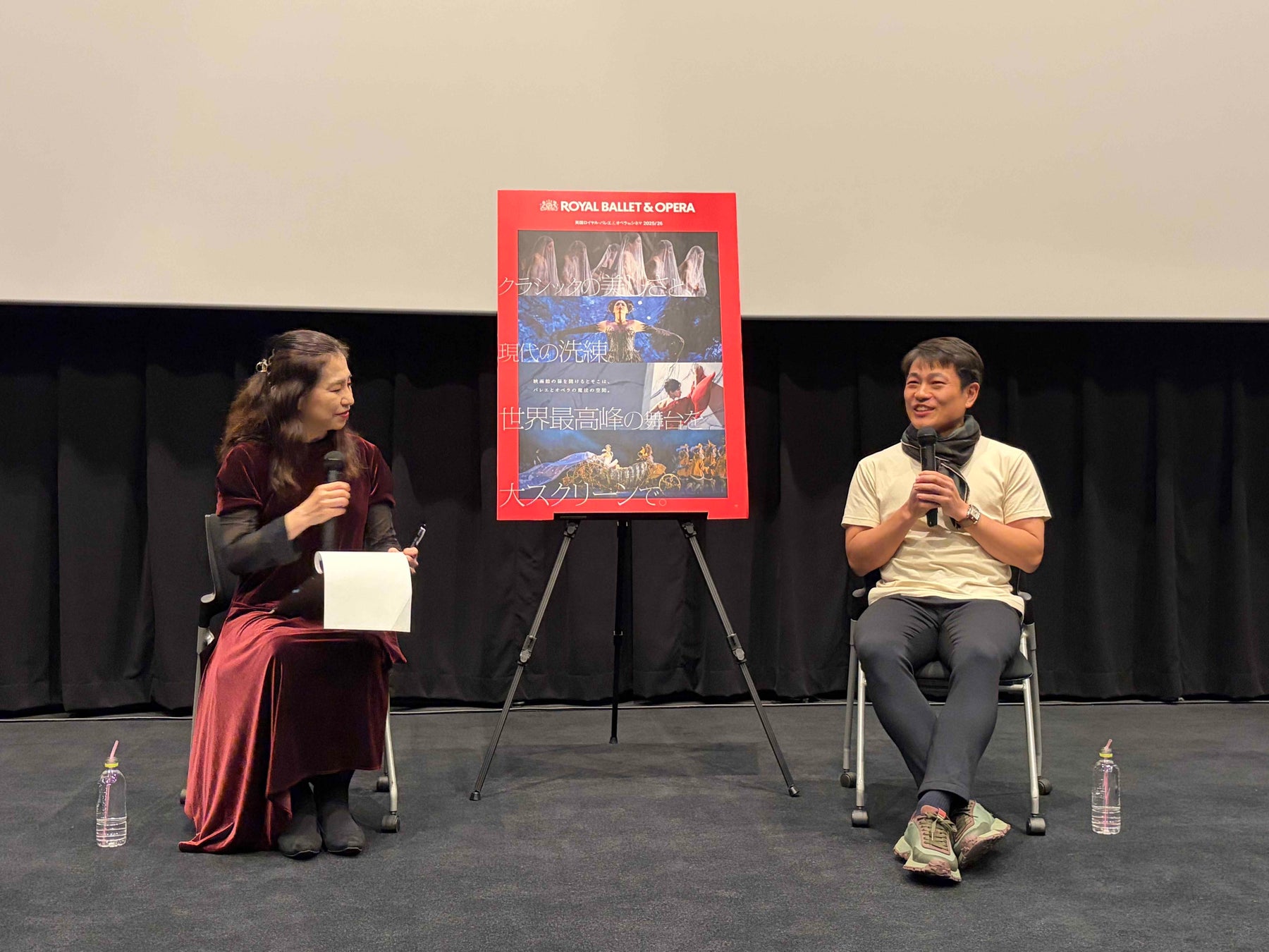 『英国ロイヤル・バレエ&オペラ in シネマ 2025/26』を配給している東宝東和では、ロイヤル・バレエのほか、パリ・オペラ座バレエのシネマも配給している。1月23日(金)からはパリ・オペラ座の『くるみ割り人形』が上映され、ロイヤルとパリ・オペラ座それぞれの「くるみ」を見比べて楽しむことができる。山本にロイヤル・バレエとパリ・オペラ座バレエの違いについて尋ねると、「イギリスは演劇の国なので、心身共に演じ切ることに重きを置いています。その反面、フランスはすごく型を重んじているというか。歌舞伎と能みたいな違いかなと思います」と、元ダンサーだからこその視点でその違いを語る。今シーズンの『英国ロイヤル・バレエ&オペラ in シネマ 2025/26』では、『シンデレラ』『くるみ割り人形』『ウルフ・ワークス』『ジゼル』が上映される。それぞれの作品の見どころについて、「古典の作品は皆さん好きだと思いますが、『ウルフ・ワークス』のように文学的なモチーフがバレエに発展している作品は好き嫌いが分かれると思います。僕が伝えたいメッセージとしては、新しい事をやっていかないと古いものも残っていかない。新しいバレエも何度でも鑑賞していくと自分の感性が磨かれて、見比べていくことで良さが分かり、バレエをより楽しめるようにと思います」と、バレエファンに向けて、バレエをより楽しむコツを明かしてくれた。さらに、「シネマシーズンは、映画館でリラックスしながら見ることができるうえに、劇場とは違ったアングルを楽しむことができる。是非、皆さんには色んな演目を楽しんでいただきたいです」と、締めくくり、温かな拍手に包まれたままイベントは幕を閉じた。