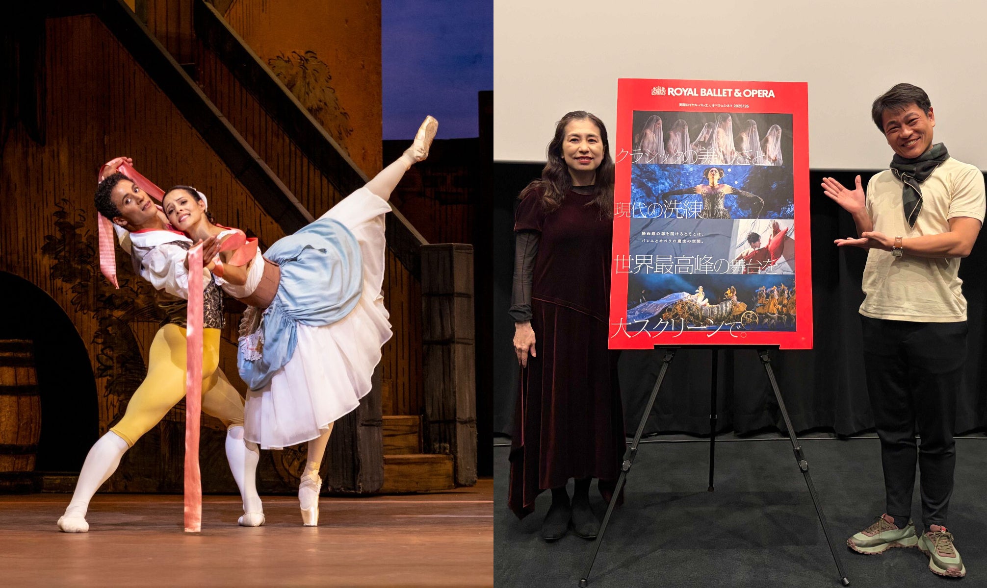 英国ロイヤル・バレエ&オペラの名作舞台を映画館で楽しめる『英国ロイヤル・バレエ&オペラ in シネマ 2025/26』。そのバレエ第一弾となる『リーズの結婚』の上映を前に、スペシャルトークイベントが1月16日、TOHOシネマズ 日本橋にて開催された。本イベントは19時からの上映回に先立ち実施され、会場には作品を心待ちにする多くの観客が来場。上映前とは思えないほどの熱気に包まれる中、舞踊評論家で本シリーズのシネマ字幕監修も務める森菜穂美が司会として登壇し、トークショーがスタート。ゲストとして登壇したのは、バレエ演出振付家/洗足学園音楽大学教授で元バーミンガム・ロイヤル・バレエ団、元ファースト・ソリストの山本康介。ローザンヌ国際バレエコンクールのテレビ放映の解説を担当し、著書「英国バレエの世界」を出版するほど、英国バレエを知り尽くした山本だからこその視点で、本作の見どころから2025/26シーズンのラインナップに至るまで英国ロイヤルの魅力について幅広く語ってくれた。