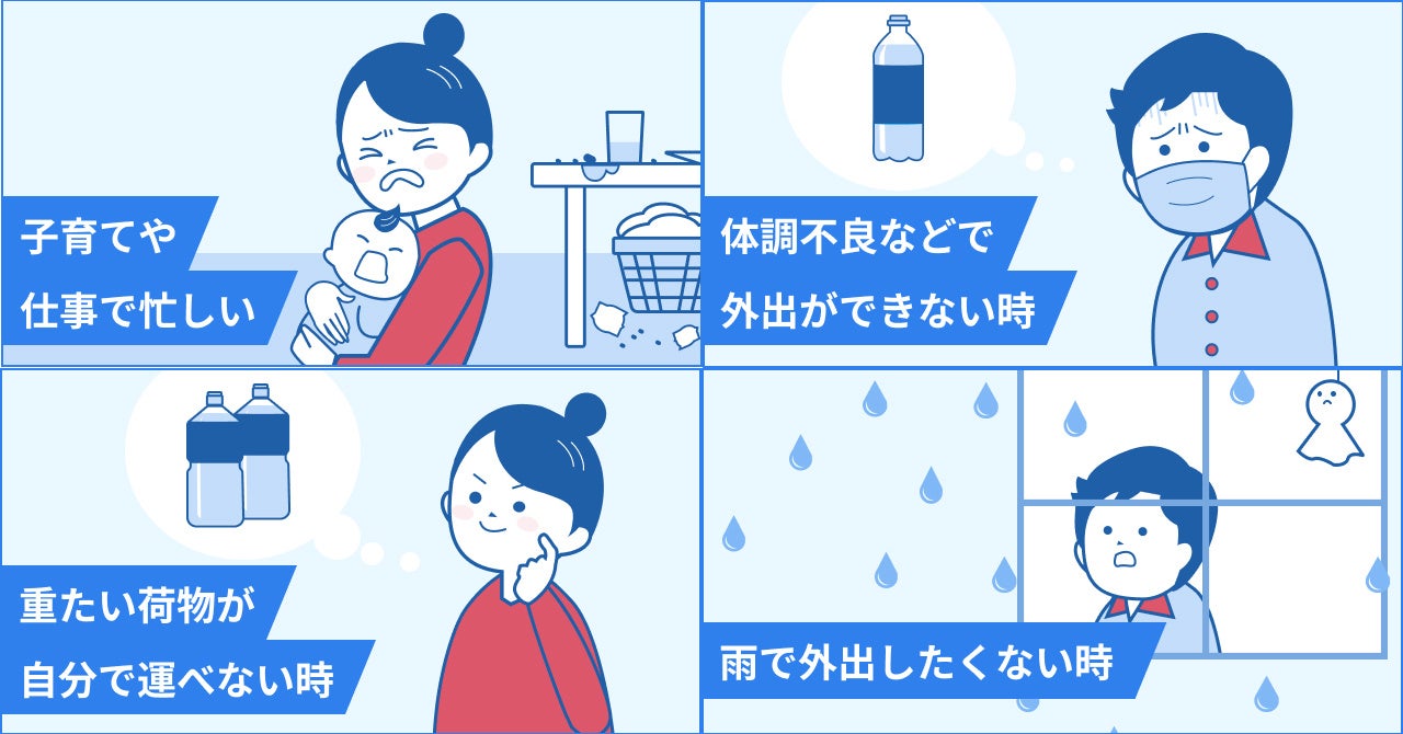 ・負担を軽減:高齢者層や仕事・育児・介護などで忙しい方の買い物の負担を軽減します。