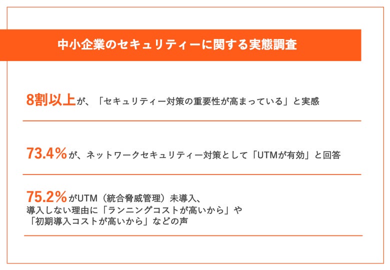 中小企業の情シス8割以上が「ネットワークセキュリティー対策の重要性の高まり」を実感!対策には「UTM(統合脅威管理)」が有効と7割強が回答するも、導入率は3割未満に