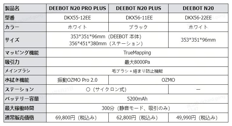 DEEBOT N20 PLUS:https://www.amazon.co.jp/dp/B0D45V22S9