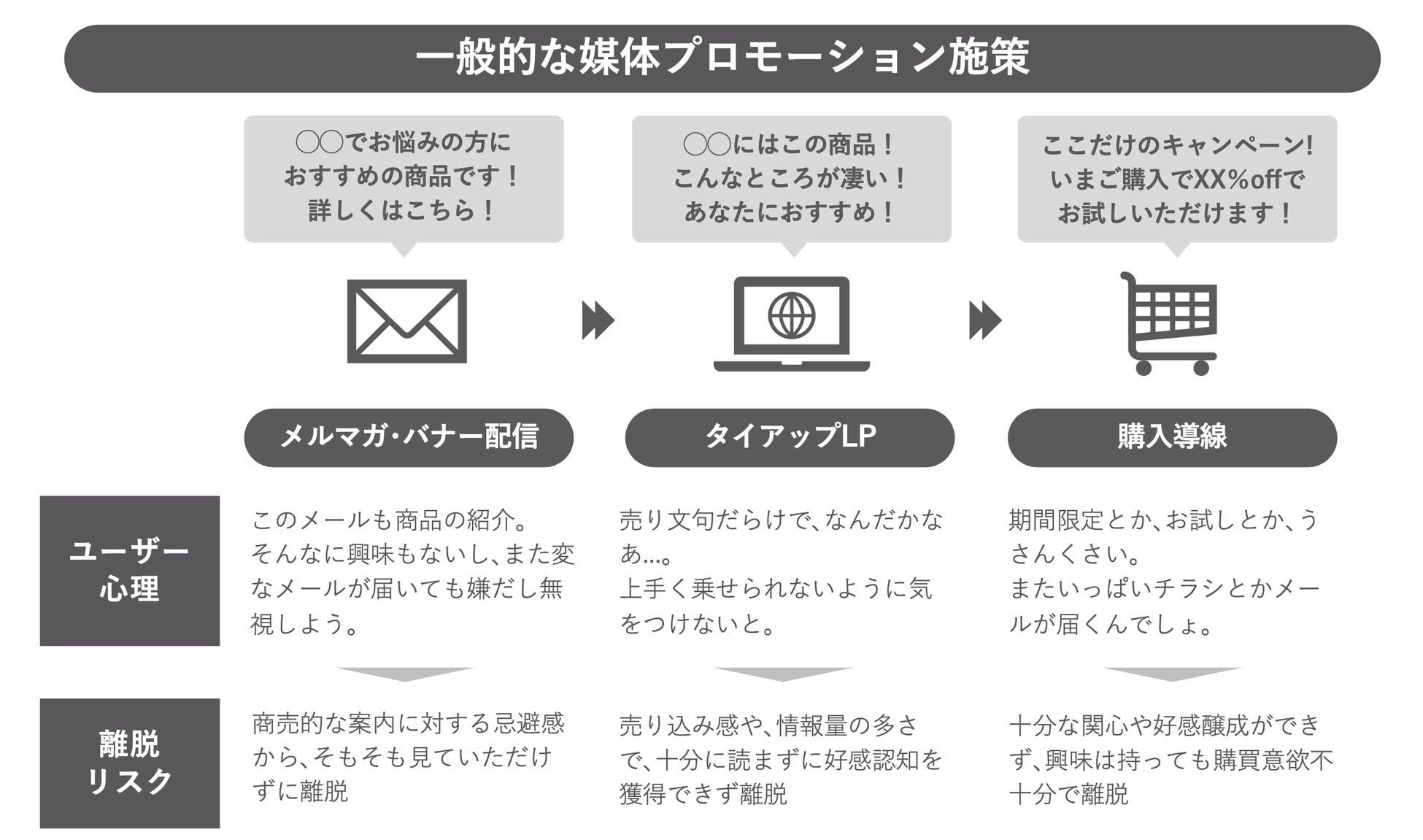 本施策では、一般的なプロモーションと異なり、「気づいたら興味が湧いていた」という好感認知を促すことができます。