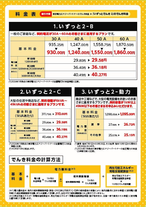 株式会社東急パワーサプライ(本社:東京都世田谷区、代表取締役社長:村井 健二、以下、東急パワーサプライ)は、首都圏の一部エリアにおいて、提携ケーブルテレビ会社のご契約者さまを対象とした電気料金プランを提供しておりますが、この度、提携先である株式会社伊豆急ケーブルネットワーク(本社:静岡県熱海市、代表取締役社長:三井 大峰、以下、伊豆急ケーブルネットワーク)のサービス対応エリアにおいて、新たな電気料金プラン(以下、本プラン)を追加し、2026年1月7日から申込受付を開始いたします。