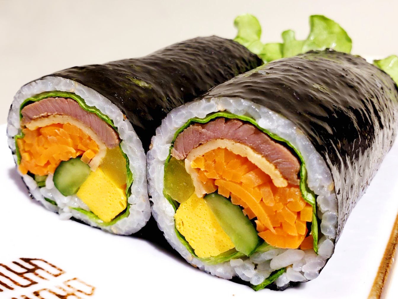 甘辛豚カルビを贅沢に巻き込んだ恵方巻。特製タレの風味と肉の旨みが食欲をそそります。