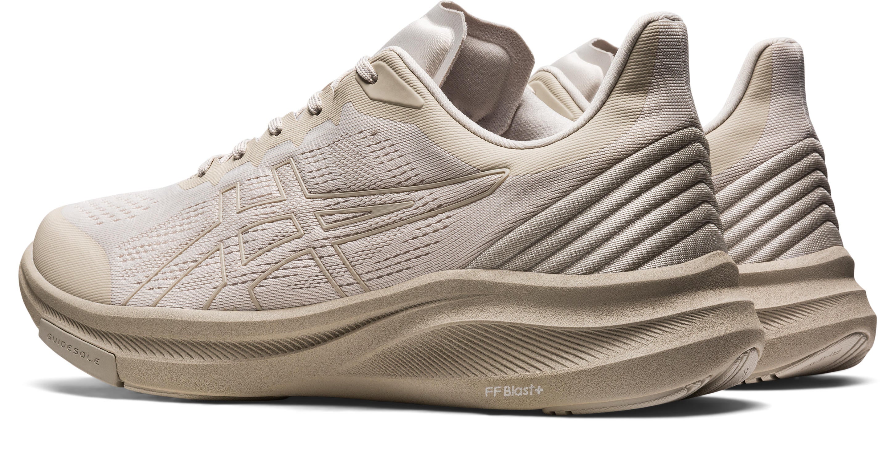 ミッドソール(甲被と靴底の間の中間クッション材)には、軽量性とクッション性に優れた「FF BLAST PLUS(エフエフブラストプラス)」を使用し、かかと部には、足にかかる負担を軽減する衝撃緩衝機能「GEL(ゲル)」テクノロジーを搭載しています。