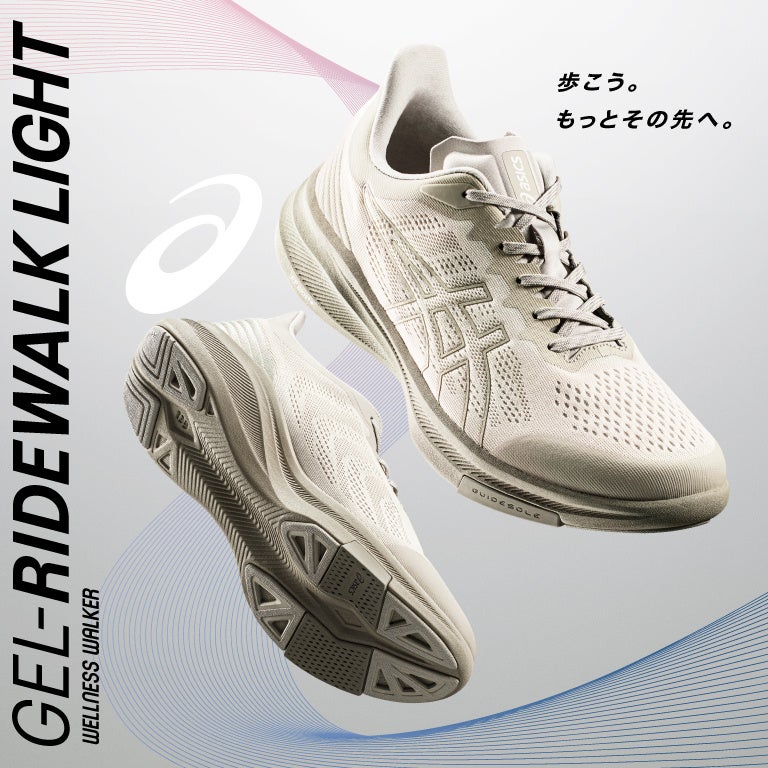 今回発売する商品は、歩く楽しさを多くの人に知ってもらいたいとの思いから開発し、2022年4月から展開している「GEL-RIDEWALK」からの新作で、より軽やかで弾むような履き心地が特徴です。ウォーキングに特化した機能を搭載し、街歩きなどのシーンにも使いやすいようシンプルでスタイリッシュなデザインとしています。毎日の外出が軽やかで楽しくなるような、日常に寄り添ったウォーキング専用シューズです。