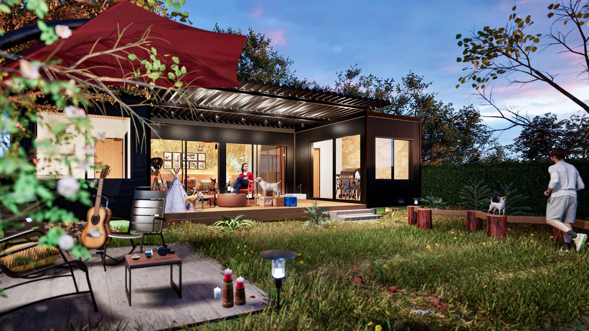 開設する施設は首都圏近郊からのアクセスが便利であり、主にファミリーや複数のグループで滞在可能なドームタイプと、愛犬家のニーズに応えるプライベートドッグランを併設したコテージタイプの2種類のタイプを計画しております。両タイプとも、それぞれの棟が独立しプライベートな空間・時間をお楽しみいただけるほか、バーベキュー設備を備えており地域食材を活かした食事の提供も行います。