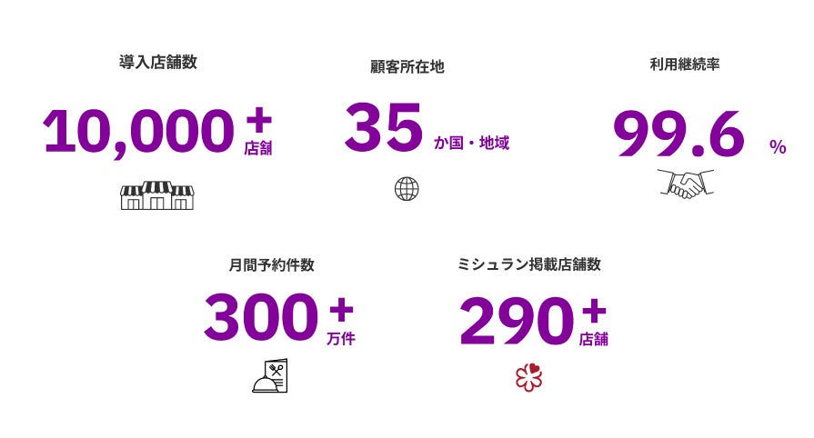 私たちは、予約・顧客管理システムという枠にとどまらず、飲食業界に変革をもたらすサービスの展開を通じて、飲食店とゲストの最適なマッチングを提供する、最良のグローバルプラットフォームを目指し、これからも成長を続けてまいります。