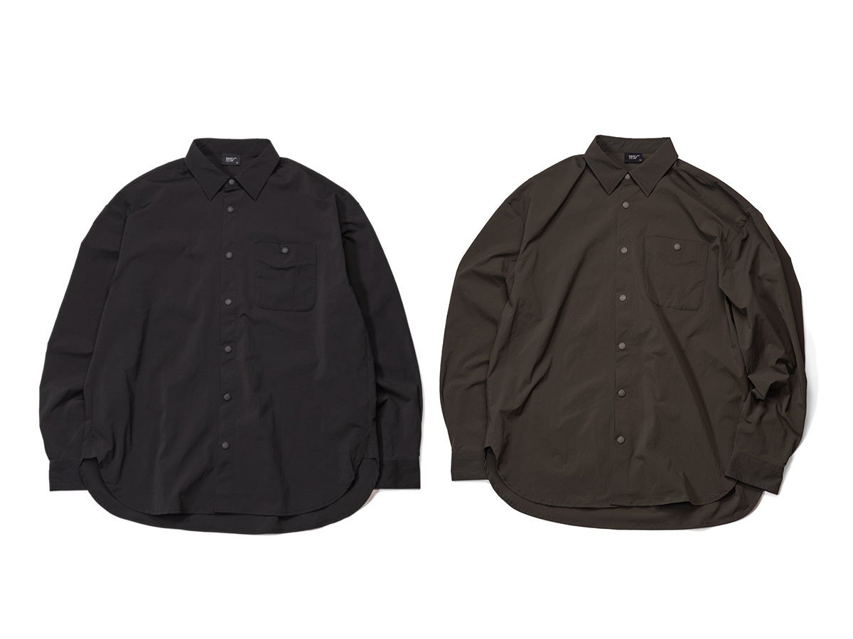 また、「PLAY STRETCH UTILITY Long Sleeve Button Shirts」はPLAY STRETCHシリーズの機能性をシャツスタイルに落とし込んだ一着。吸汗速乾・抗菌消臭・UVカット(UPF50+)といった機能を備えながら、スナップボタン仕様や程よくラフなシルエットにより、アウトドアにも街にも自然に溶け込むデザインに仕上げました。レイヤードスタイルのインナーとしても、主役としても活躍します。