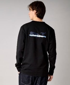 海洋ゴミからアップサイクルされた再生ポリエステル素材「ONE OCEAN」を使用したロングスリーブTシャツです。ポリエステル100%ながら、柔らかな肌触りとしっかりとした生地感が特徴。シワになりにくく、乾きやすいイージーケア性も備えています。フロントポケットにはドレステリアのボックスロゴをプリントし、バックにはONE OCEANのロゴが入ったクジラのイラストをデザインしています。