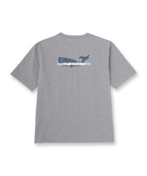 同じく「ONE OCEAN」素材を使用したハーフスリーブTシャツです。柔らかな肌触りとしっかりとした生地感が特徴。シワになりにくく、乾きやすいイージーケア性も備えています。ドライな着心地で、一枚ではもちろんインナーとしても活躍します。フロントポケットにはドレステリアのボックスロゴをプリントし、バックにはONE OCEANのロゴが入ったクジラのイラストをデザインしています。