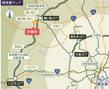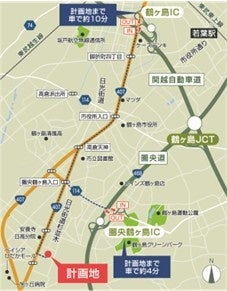 1 圏央道「圏央鶴ヶ島」ICから約1.8㎞、関越自動車道「鶴ヶ島」ICから約4.0㎞と、