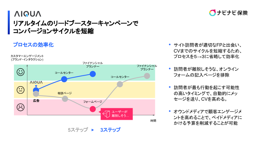 「ナビナビ保険」、AIQUA(アイコア)でCV獲得プロセスを大幅短縮、マーケティング活動の効率化で、電話経由でのCVを126.3%改善