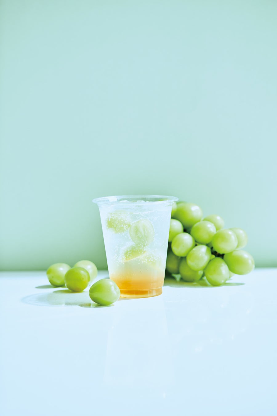 チョコレートの原料であるカカオの果実部分から作ったカカオのフルーツビネガーに、シャインマスカットの果肉と果汁を合わせた爽やかなドリンクです。