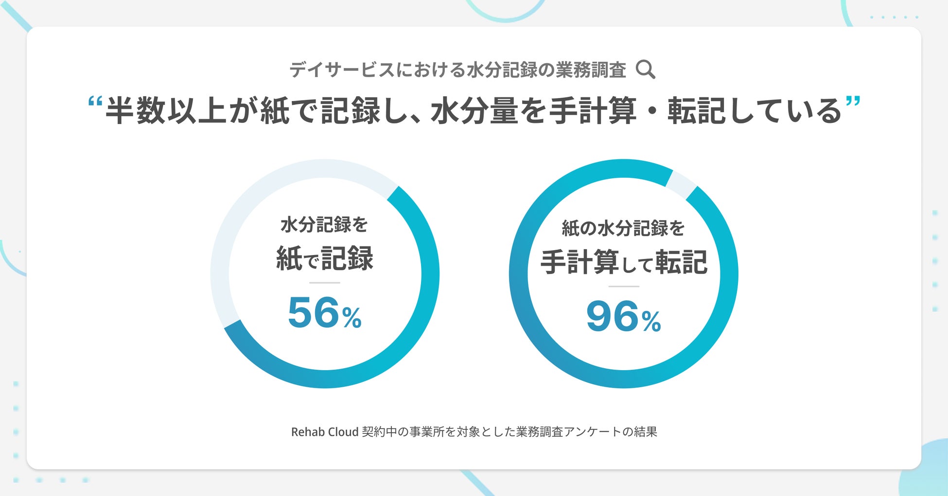 株式会社Rehab for JAPAN(本社:東京都千代田区、代表取締役:大久保 亮 以下「当社」)は、タブレット記録アプリ Rehab Cloud デイリーに、新しく水分記録をリリースいたしました。