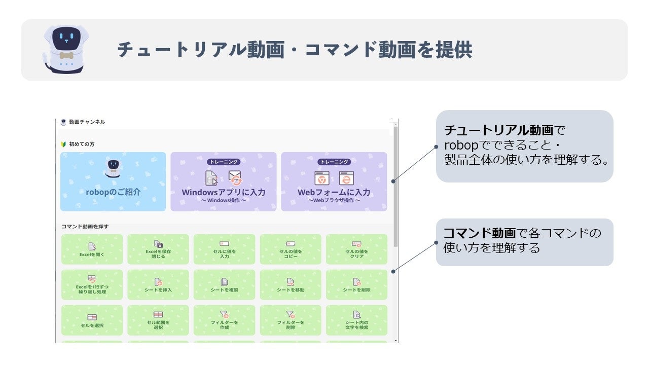robopを学習できる多数の動画チャンネルをご用意しました。