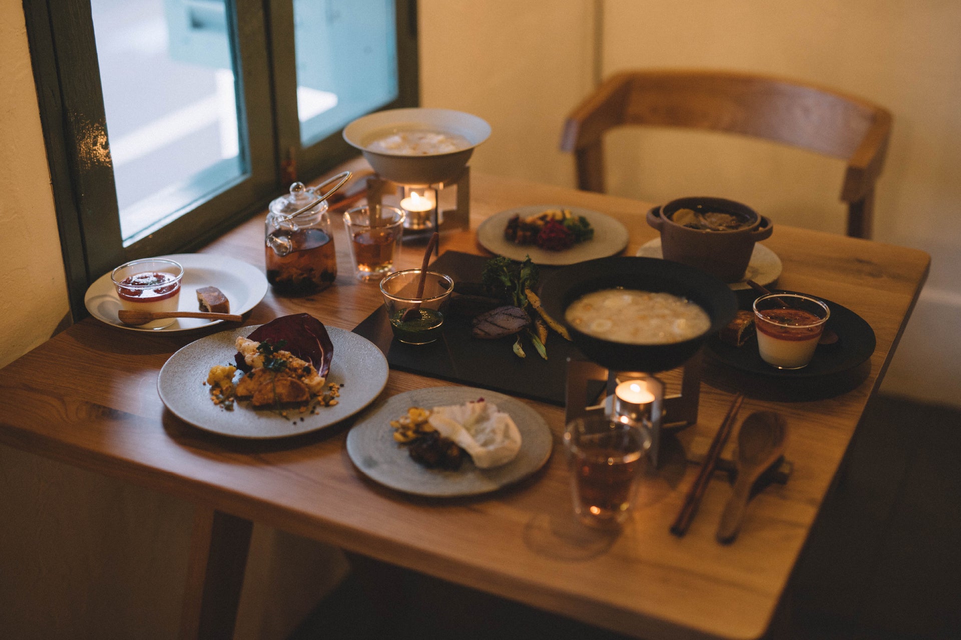 今回は芽吹の食材と共に、大陸や東南アジアのスパイスや発酵のエッセンスを融合させた風土料理6品をご提供します。即席的でありながらグルーヴ感のあるダイニングをぜひお楽しみください。