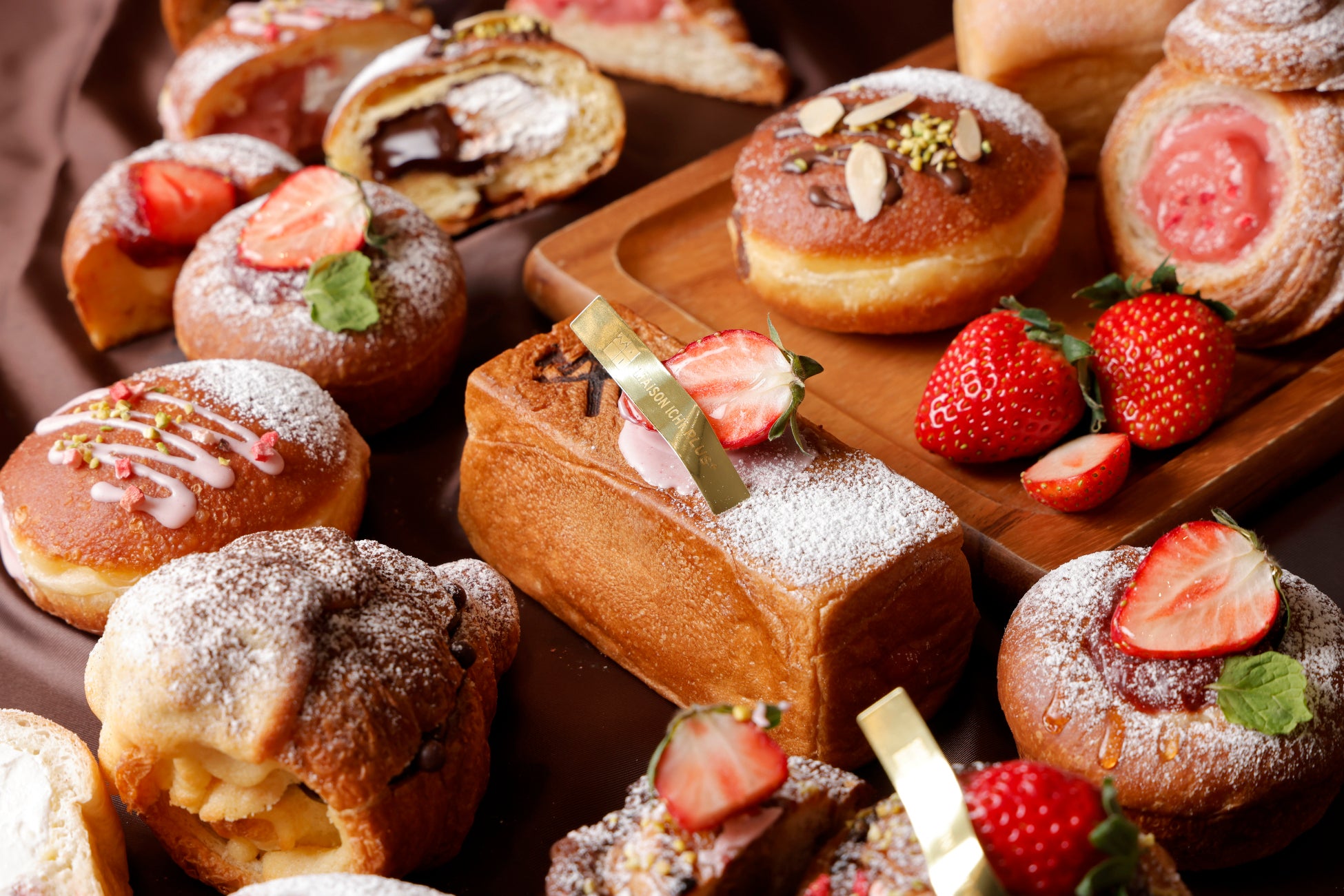 今年の冬は、華やかな香りと濃厚な甘さで人気の「あまおう苺」を主役に、生地の食感やクリームの配合にこだわった多彩なパンをご提供します。