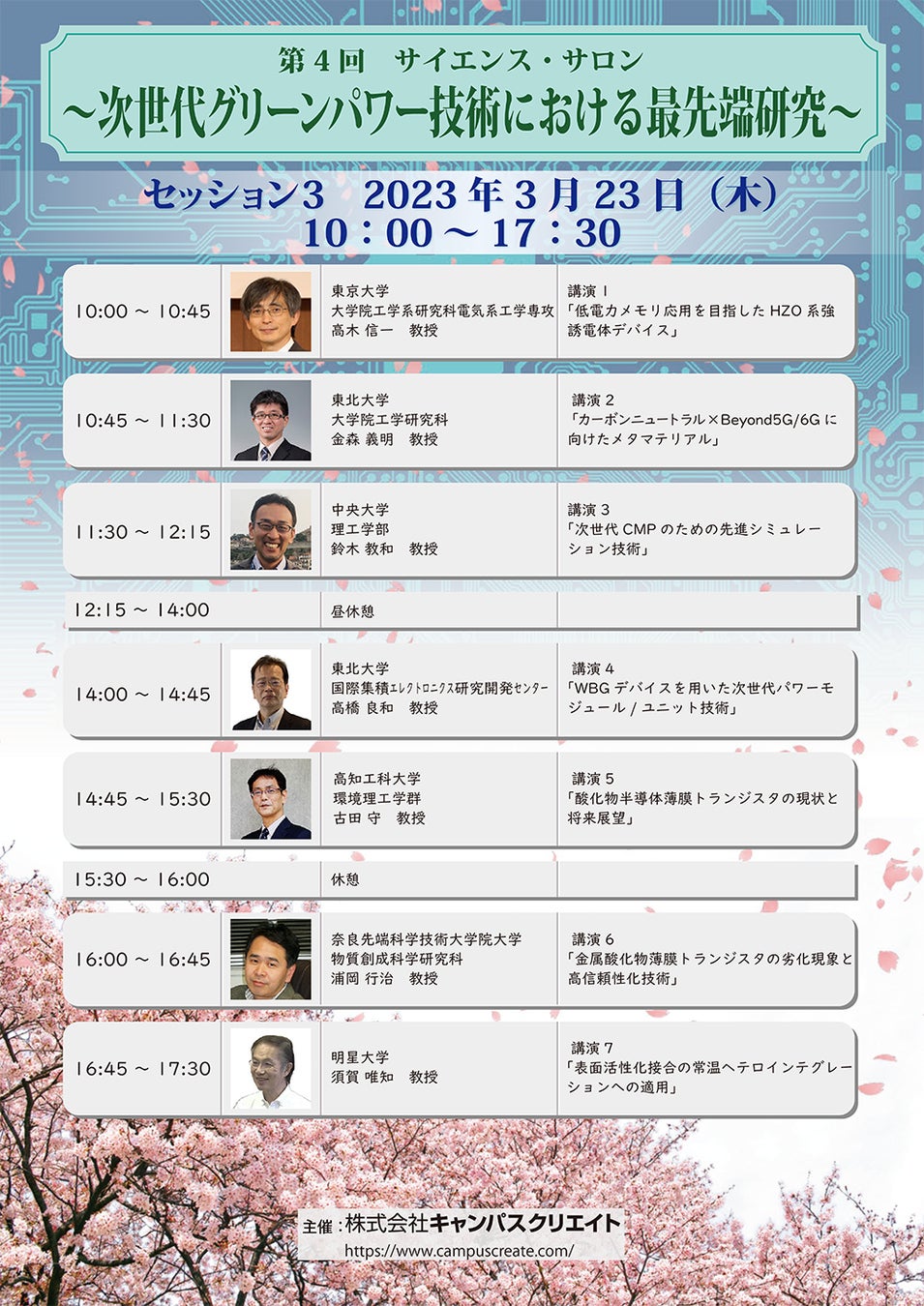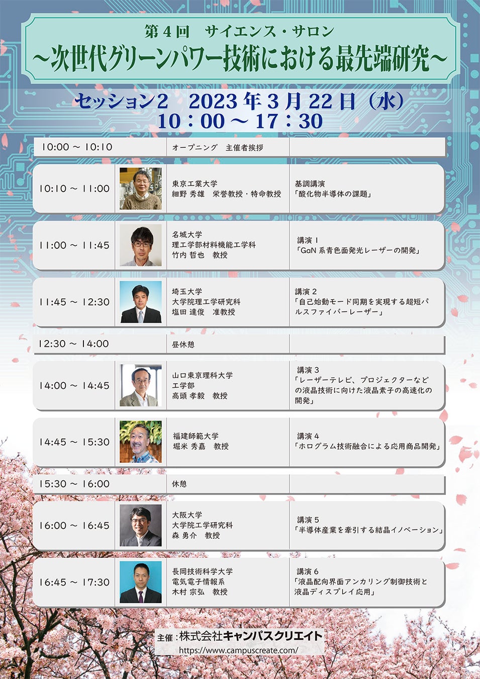 2023年3月22日(水)、23日(木)、「【第4回サイエンス・サロン】~次世代グリーンパワー技術における最先端研究~」を開催いたします(Zoomによるオンライン開催)。ぜひご参加くださいませ。