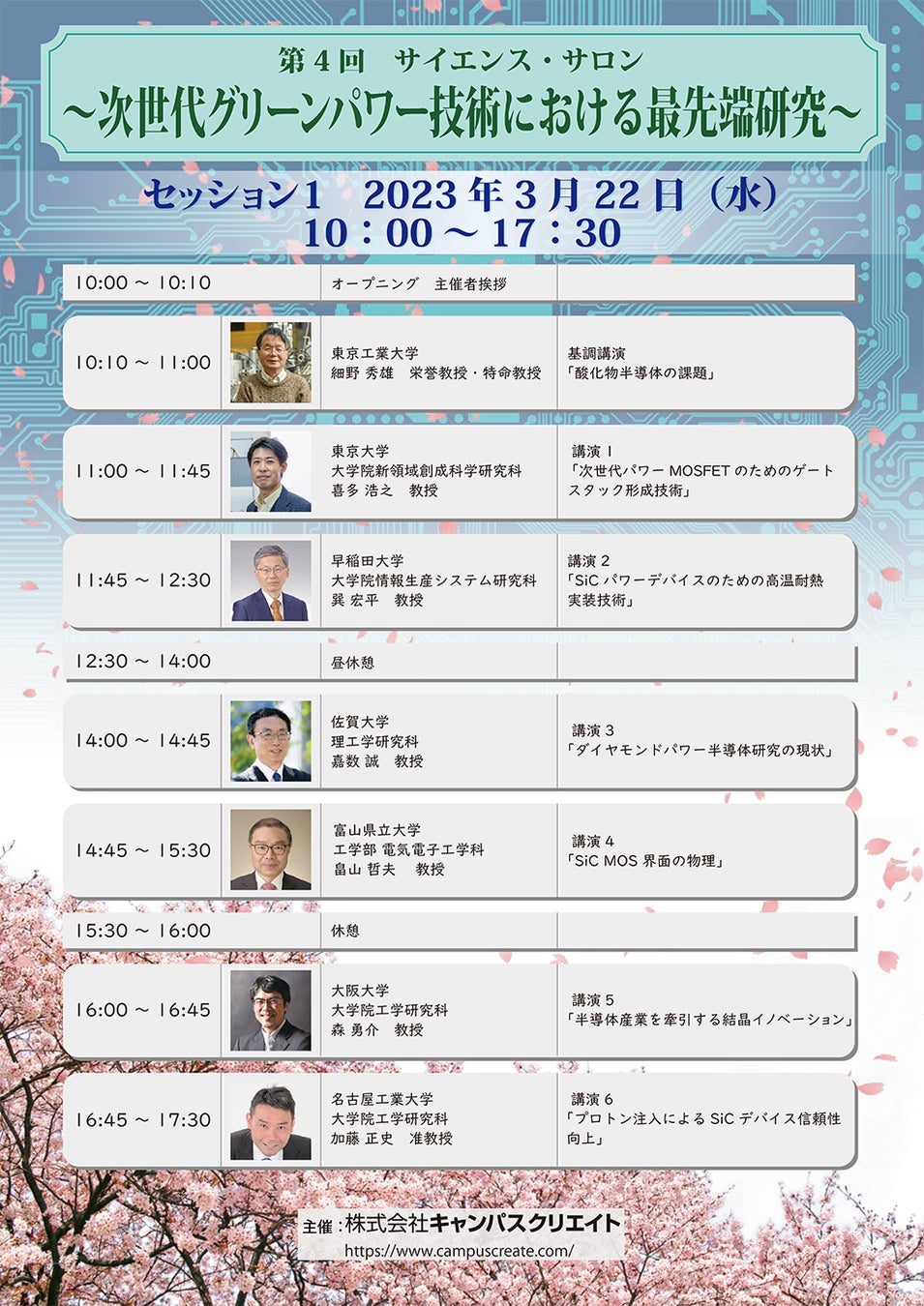 今回のセミナーでは、次世代パワーデバイス材料の開発、及びこれらを活用した応用技術など最新の研究成果をご紹介いたします。