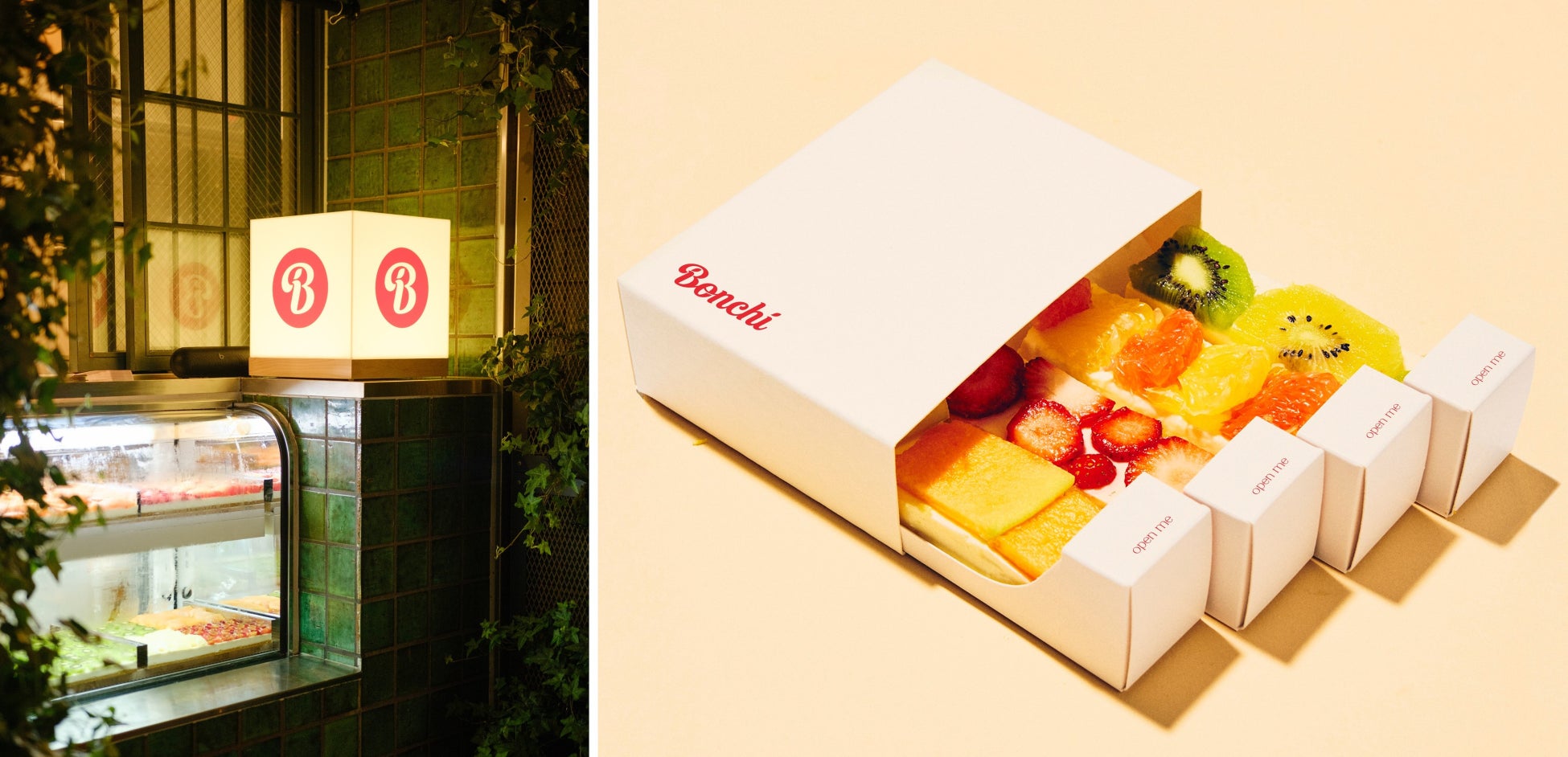 「Bonchi Stand」では、市場に出回りにくい完熟フルーツとレアチーズケーキを組み合わせた新⾷感のチーズケーキバーを販売。四季折々に旬を迎えるフルーツを使い、常時8種類をご⽤意しています。メニュー開発には、⾃由が丘で25年にわたり愛されてきたイタリアンの名店「Babbo Angelo」のオーナーシェフ コッツォリーノ・アンジェロ⽒に監修いただき、完熟フルーツの魅⼒を最⼤限に引き出すことのできるレアチーズケーキを完成させました。⾷べ歩きのできる1本⼊りから、ホームパーティの差し⼊れにも使いやすい4本⼊りなど様々な商品ラインナップをご⽤意しています。また、企業イベントなどにもご利⽤いただけるケータリングサービスなども順次展開していく予定です。