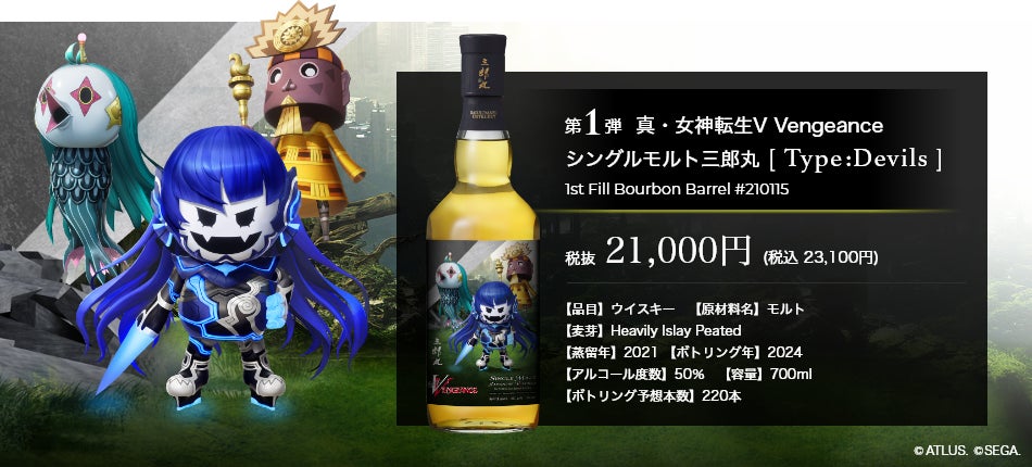 『真・女神転生Ⅴ Vengeance』シリーズ×三郎丸蒸留所コラボウイスキー シングルモルト第一弾の抽選販売が7月26日(金)から開始!