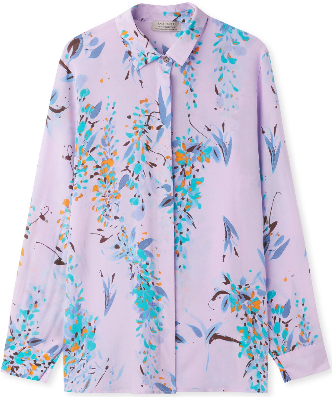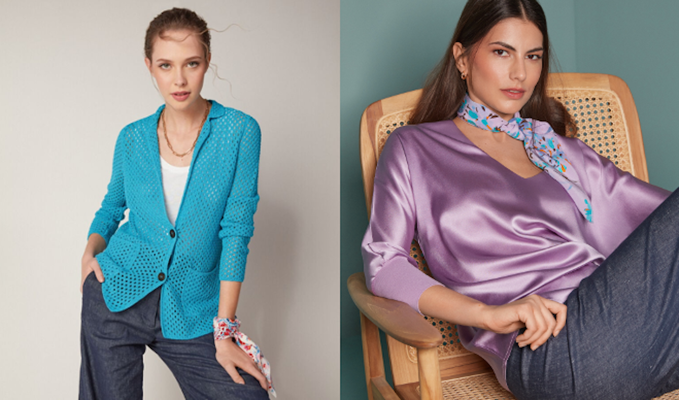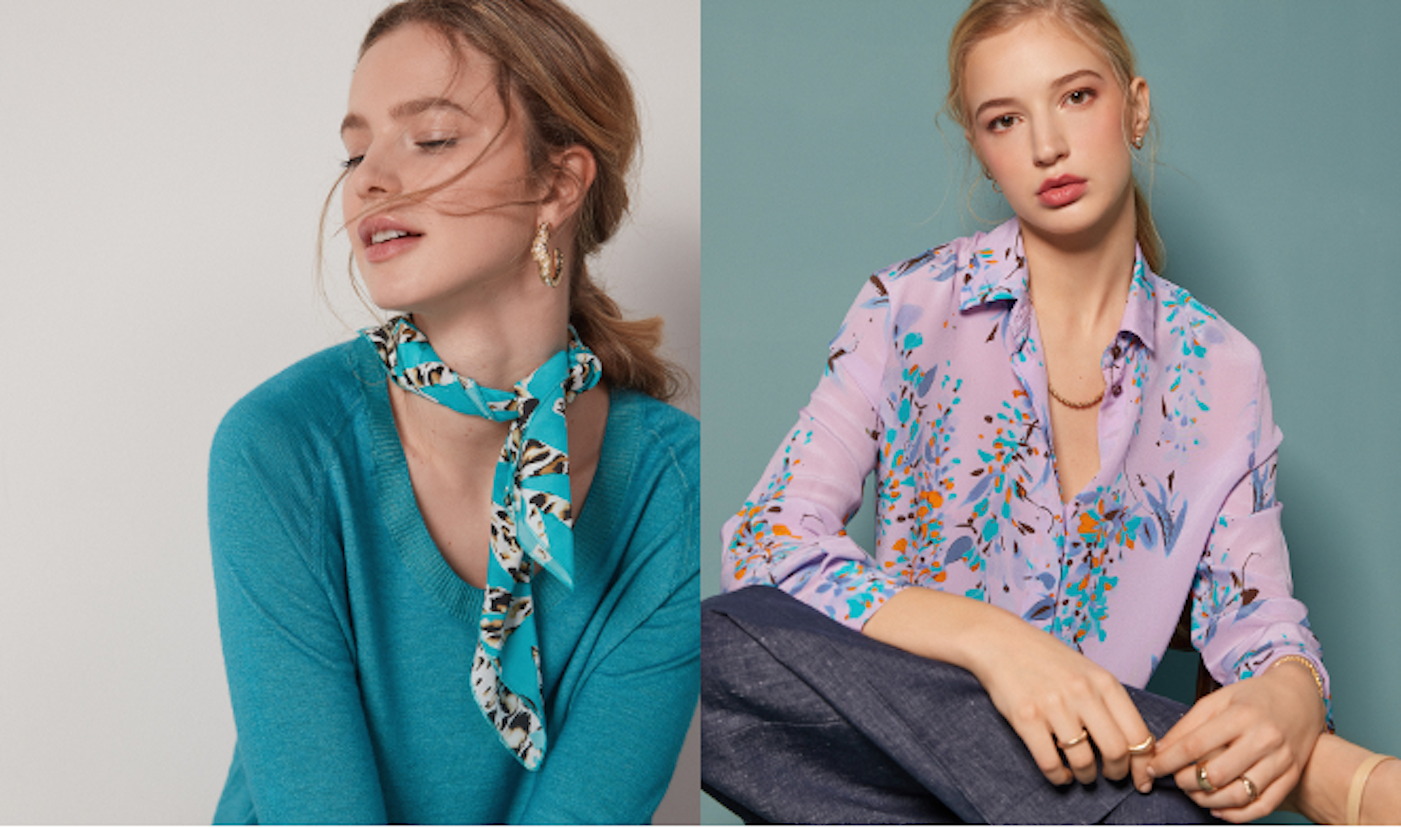 イタリアンカシミヤブランドのFALCONERI(ファルコネーリ)では、カシミヤ同様に高品質の天然素材シルクをつかったシーズンカラーの色鮮やかなシャツやスカーフを展開しています。特に、プリントモチーフのミニスカーフは、60cm x 60cmの正方形で、首回りを彩るだけでなく、バッグなどにもアクセントとして楽しむことができます。
