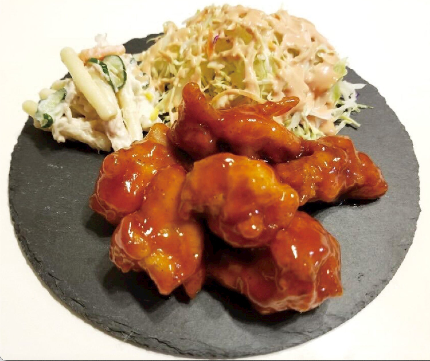 提供メニュー:張さんの⾟々ヤンニョムチキン・チーズボール・チーズダッカルビ・キムチ