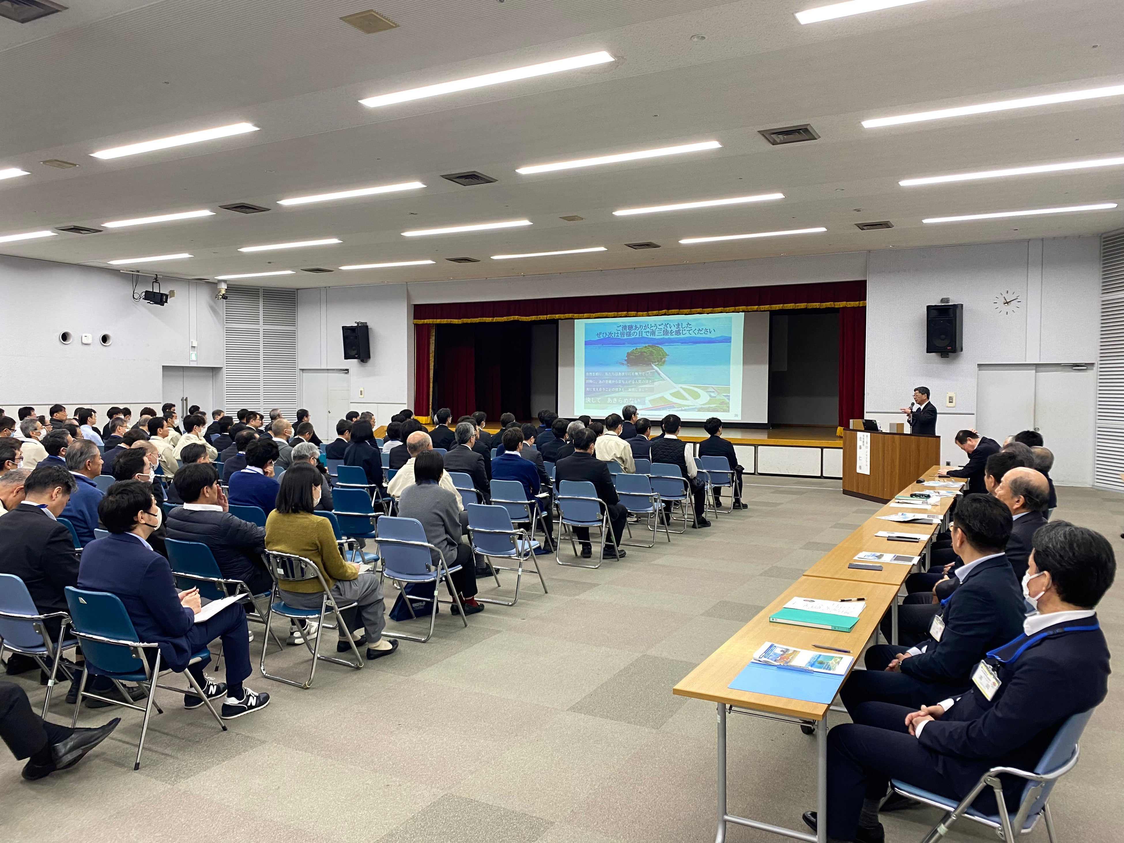 南三陸町は東日本大震災の津波により町の中心部が壊滅的な被害を受け、多くの尊い命が失われました。講演では当時の状況や復興の歩み、災害時に求められる判断の重要性について、実際の経験を交えながら紹介しました。