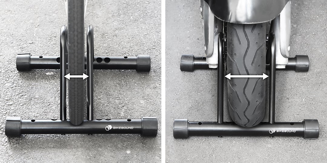 タイヤ幅3cm~12cmまで適応、設置時のガタツキ防止
