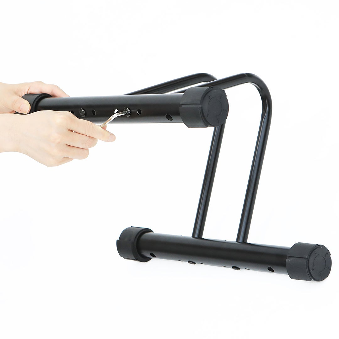 当商品はスタンドにタイヤを差し込むだけで、左右から前輪をしっかり支えてくれ、強風などでも自転車が倒れにくい設計になっています。