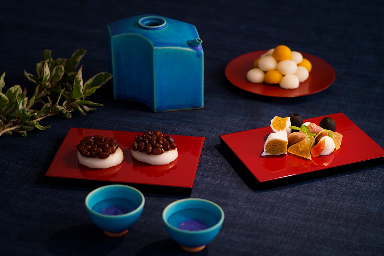 宴では、冊封使にも振る舞われた「きっぱん」や「ふちゃぎ」などの甘味を楽しみます。きっぱんは、香りのよい柑橘を練り込んだ300年以上の歴史がある菓子で、ふちゃぎは、十五夜などの月を愛でる夜に、今でも沖縄県内で親しまれている餅菓子です。伝統の酒器「カラカラ」で味わう泡盛と共に、優雅な夜を過ごします。