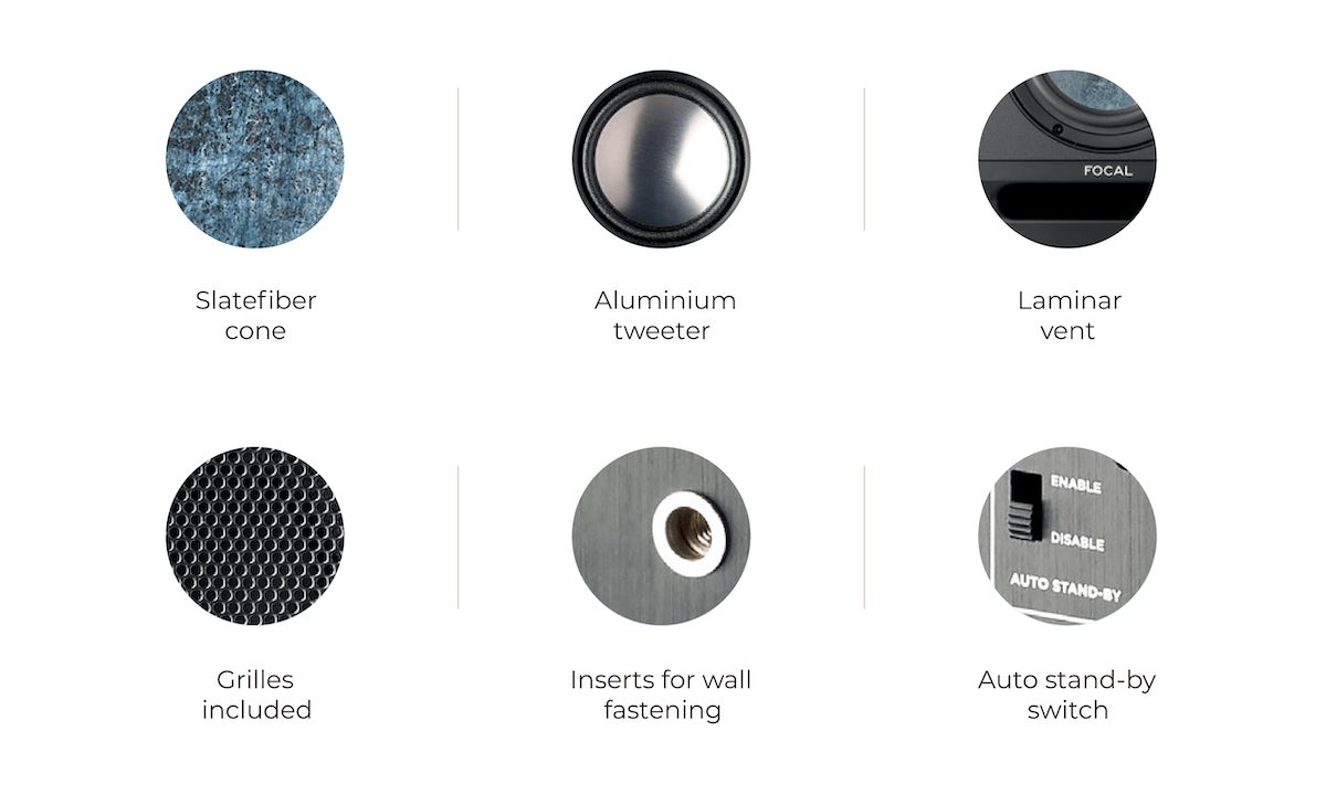ALPHA EVOシリーズは、ミックス、マスタリング、DJ、ブロードキャストなど、さまざまな用途に対応し、あらゆる環境での優れたモニタリングを提供してくれます。 広い音の分散を確保するアルミニウム製インバーテッド・ドーム・ツイーターと、そのトーンバランスの中立性とダイナミクスで高く評価されているFocal独自のスレートファイバー・コーンを搭載。フランスのサンテティエンヌで生産されており、周波数特性のニュートラルさとダイナミック・レンジにおいて非常に優れています。大型ラミナーベントを備え、ノイズや歪みの大幅な削減を実現。バスレフ設計により、狭いスペースでも安定したモニターを提供してくれます。デザインは、従来のモニターの立方体の形状は丸みを帯びたエッジに変わり、 入力端子はXLR接続に加え、TRS入力、RCA入力(アンバランス)も搭載。さらに自動スタンバイモードのON/OFFスイッチや、壁と天井に固定するためのインサートを備えており、イマーシブ環境の構築などのニーズにも幅広く対応できます。