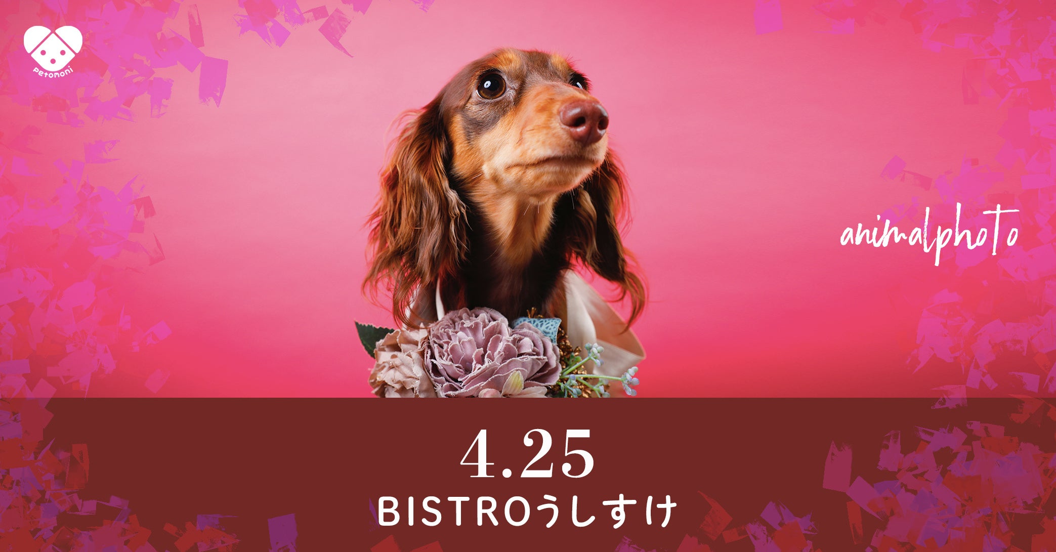 このたび開催する撮影会イベントは、スタジオタカノが運営するペット撮影事業petomoniが企画する愛犬撮影会を、お台場のペット同飯™️可レストラン「BISTROうしすけ」にて、5組限定で開催する7回目のイベントとなります。