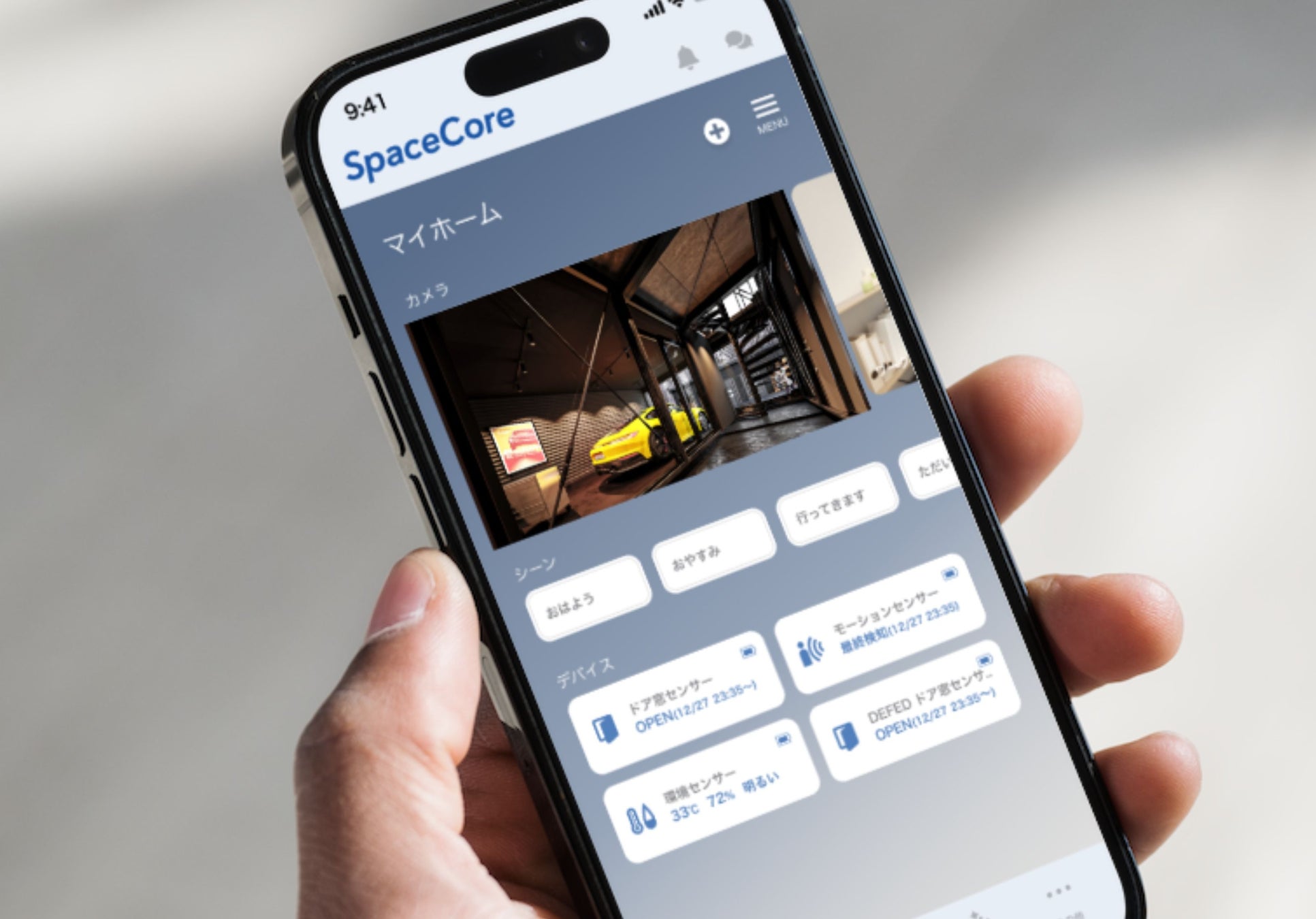 「エミベース 小手指」は、「多種多様な趣味の世界を満喫することができる住まい」を事業コンセプトにしたガレージハウスです。バイクや車などの趣味を安全かつ快適に満喫できるよう、遠隔での住宅設備の操作やセンサーによるセキュリティ、カメラモニタリングなど、「SpaceCore」の統合されたスマートホームが評価され、採用に至りました。