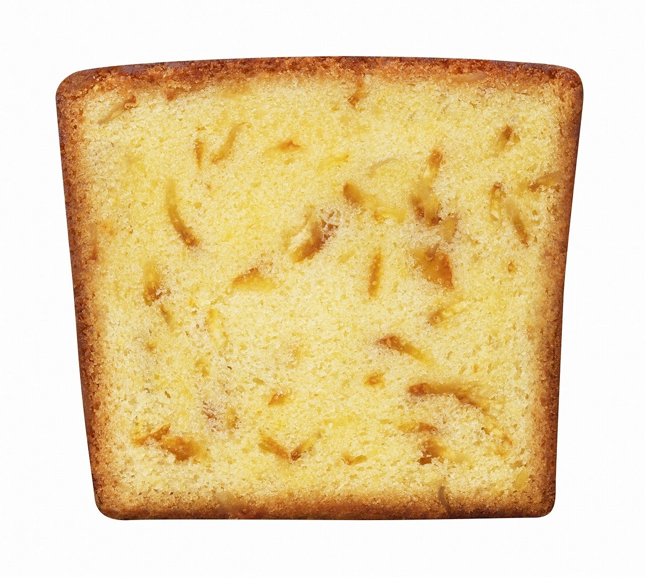 オレンジピールを加えて焼きあげた、しっとり食感のケーキ。オレンジのジューシーさと爽やかな香りが楽しめます。(※中塚翠涛氏のデザインではありません。)