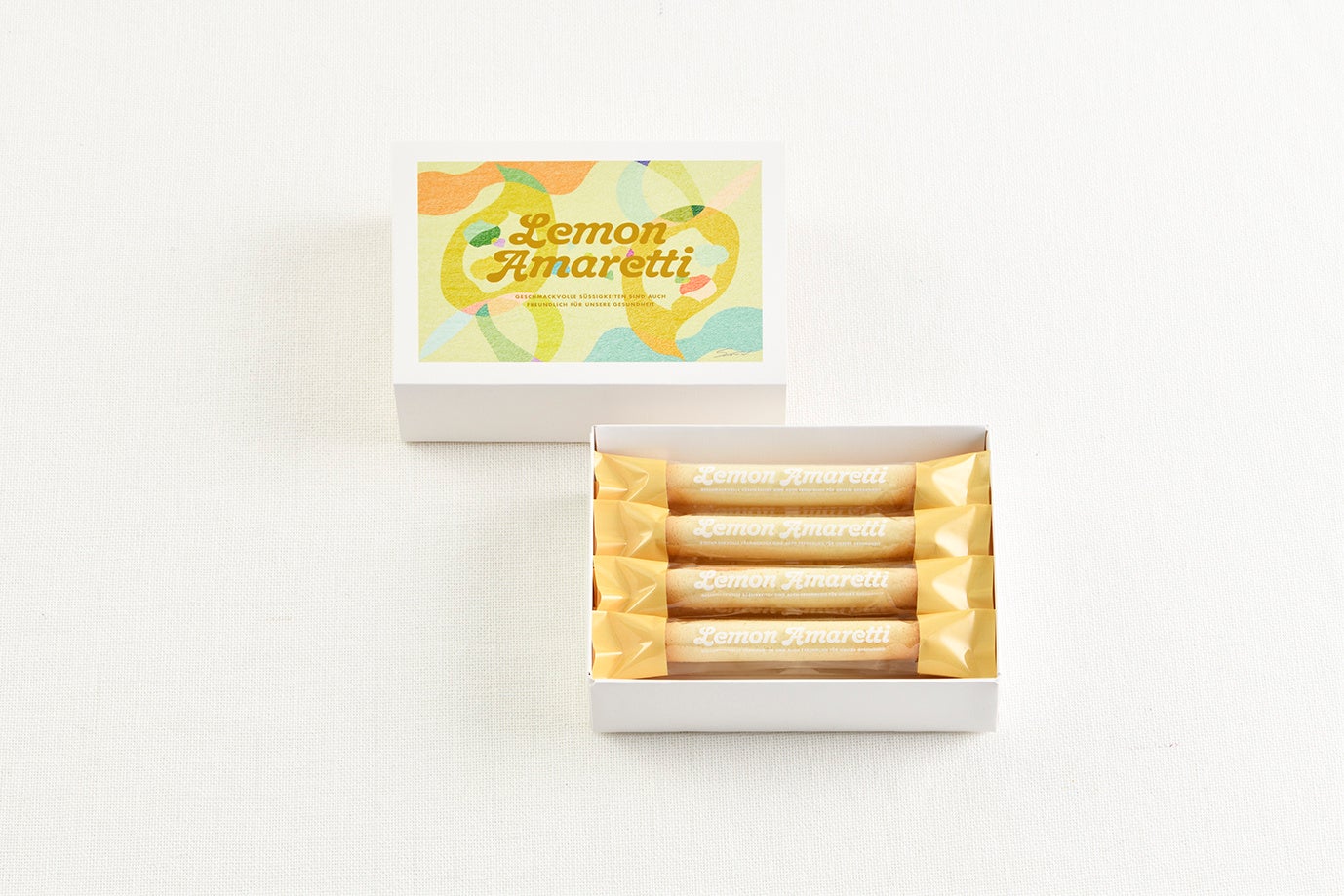 レモンの酸味・ほろ苦さとバターの豊かな香りがバランス良く楽しめる、サクサクと軽い食感の薄焼き生地のロールクッキー。(※個包装は中塚翠涛氏のデザインではありません。)
