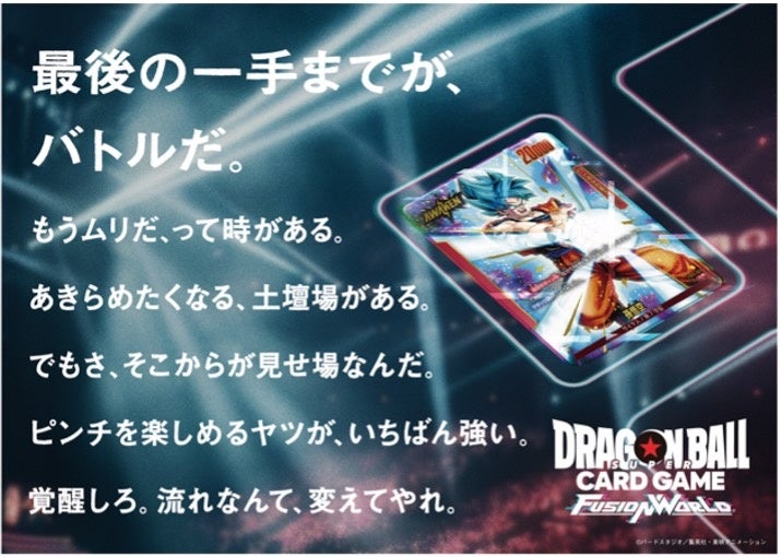 株式会社バンダイ カード事業部(本社:東京都台東区駒形)は、『DRAGON BALL』の世界観を体感できる対戦型トレーディングカードゲーム『ドラゴンボールスーパーカードゲーム フュージョンワールド』の最新TVCM「流れが変わる時」篇を2024年8月9日(金)より公開開始します。
