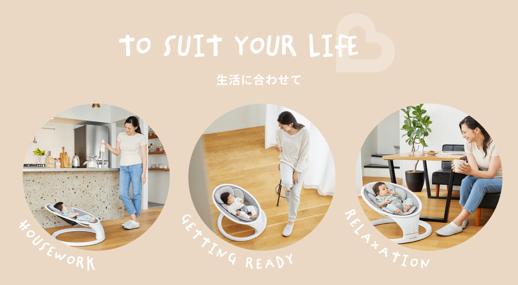 沐浴や離乳食等と違い、“赤ちゃんをそばで見守る”という名のない育児。パパママだけで子育てに奮闘する家庭が増えている中、代わりに赤ちゃんをあやしてくれる製品を取り入れることで親子の暮らしの効率化を推進。家事やお出かけ準備、大人がリラックスする時間も抱っこをおまかせできる、子育ての頼れるパートナーの電動ベビースウィングは、時間と心にゆとりをもたらし、赤ちゃんと向き合う機会を増やします。