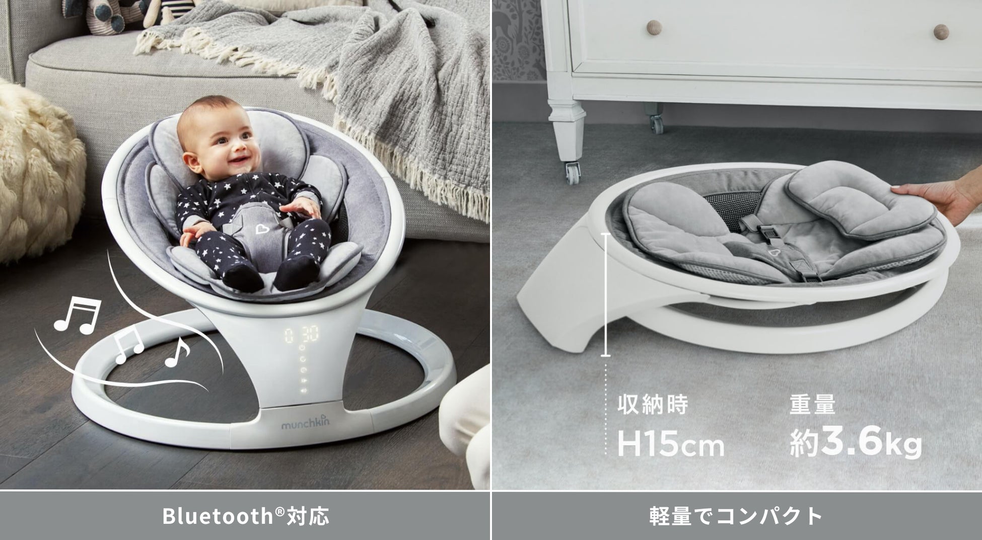 育児のすき間時間を作る「マンチキン 電動ベビースウィング」。