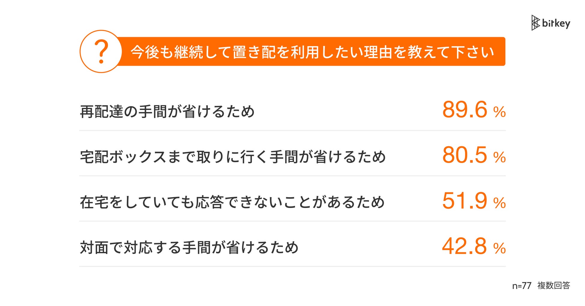 継続したい理由の8割超が「再配達の手間が省ける」「宅配ボックスに行く手間が省ける」