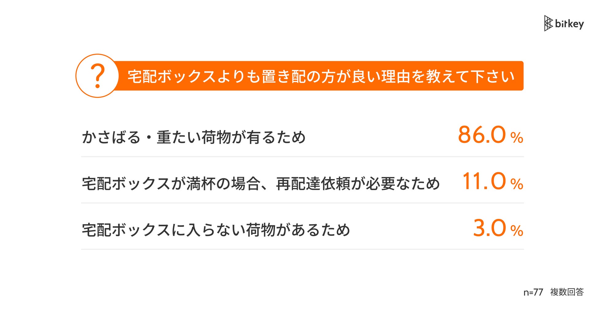 宅配ボックスより「置き配」を利用したい理由は「かさばる・重い荷物があるため」が最多