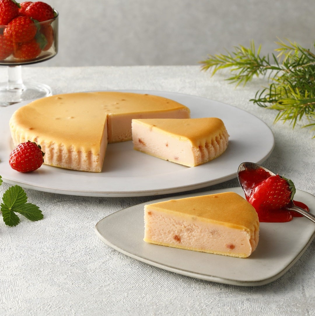 【チーズガーデン】今年は栃木県産「とちあいか」の上品な香りと甘みが広がる、ほんのりピンク色の愛らしい『御用邸ストロベリーチーズケーキ』今冬も登場