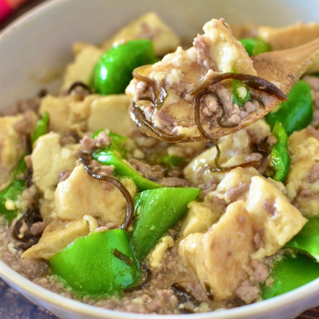 【ピーマンと厚揚げの麻婆豆腐風】味の決め手は塩こんぶ♪